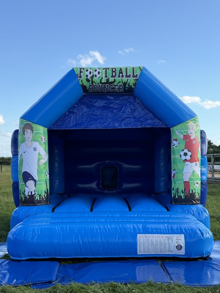 Score big at your next event with our Blue Football Bouncy Castle designed for all football fans, a sporty and exciting addition to any event! This bouncy castle is decked out in a striking blue and light blue colour scheme, complete with vibrant football graphics and motifs. It's the perfect centrepiece for any football-themed party, sports day, community event, or gathering, providing a fun and engaging space for children to enjoy. Perfect for inside and outside events!