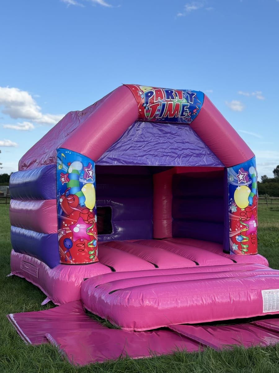 Our Blue Party Time Balloons – Pink & Purple Bouncy Castle comes with: