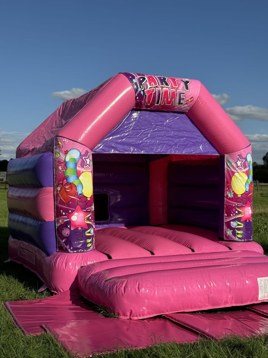 Our Pink Party Time Balloons – Pink & Purple Bouncy Castle comes with: