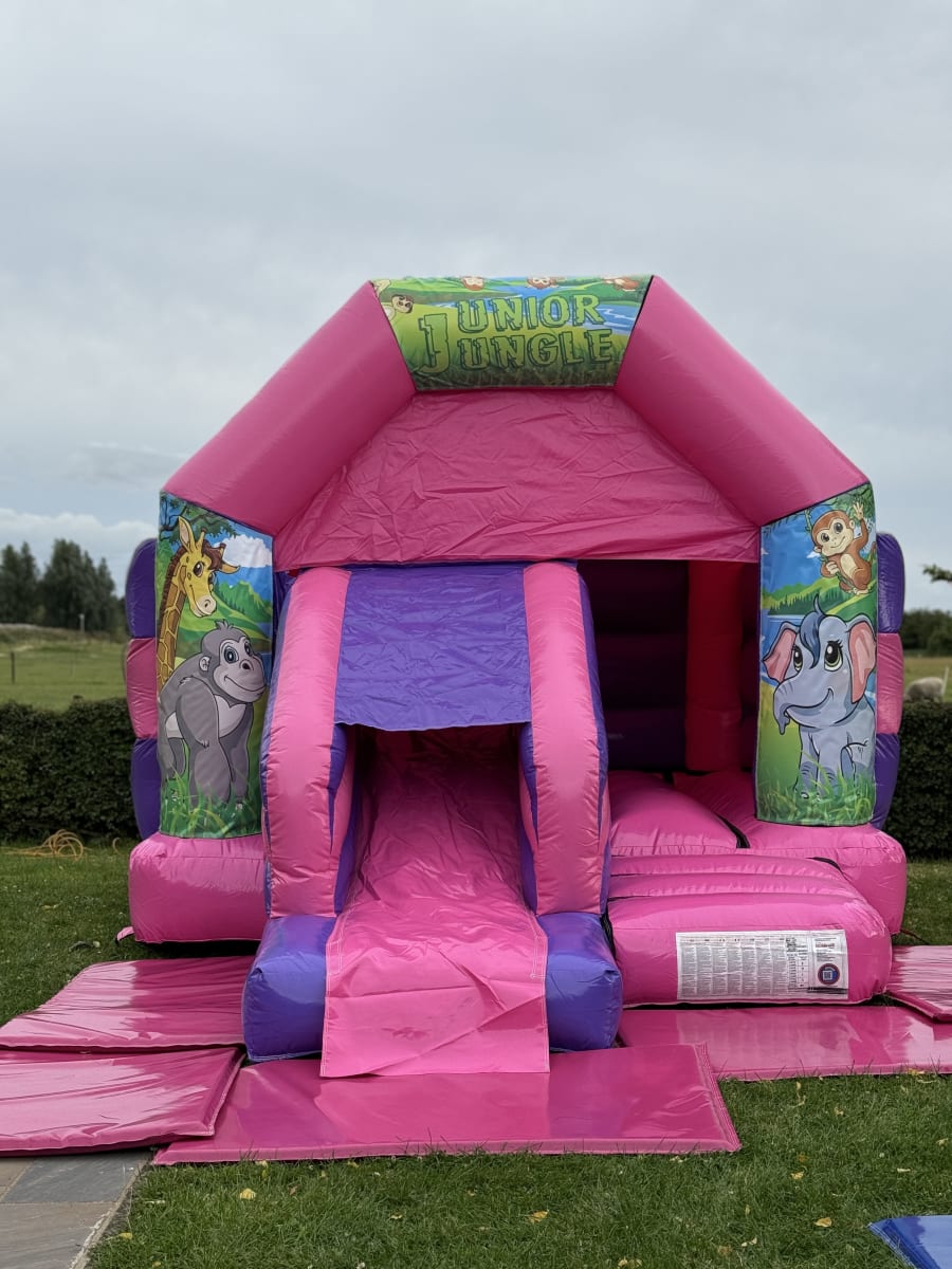 Our Jungle Pink & Purple Bouncy Castle & Slide Combo with: