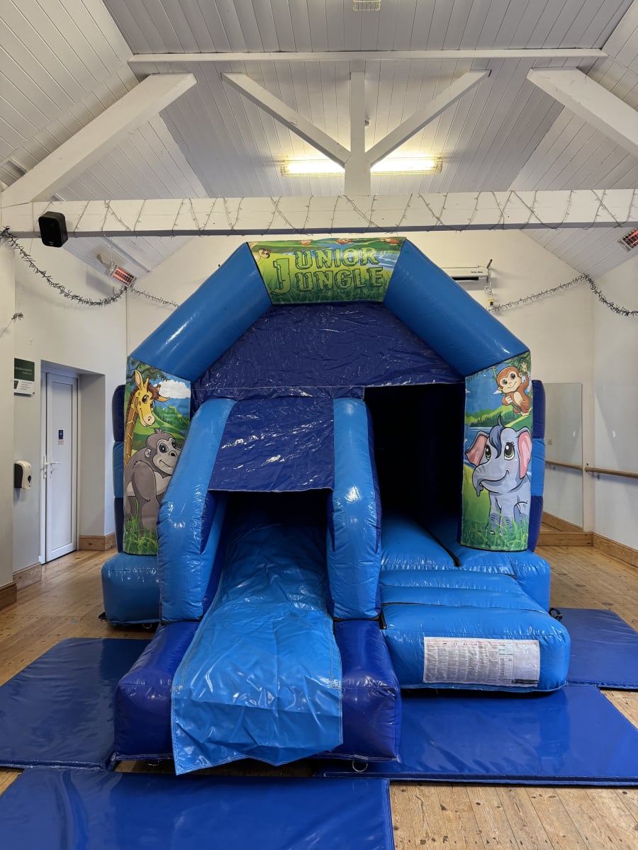 Introducing the Blue Jungle Bouncy Castle & Slide Combo: A Wild Adventure Awaits! Unleash the untamed spirit of playtime with our Jungle Bouncy Castle, a magnificent playground that takes kids on an exhilarating safari without leaving their garden, with the added slide it is sure to add an extra level of excitement. Crafted with vivid colours that evoke the lush greenery and vibrant wildlife of the tropics, this inflatable wonder beckons little adventurers into a realm where bouncing meets exploration.