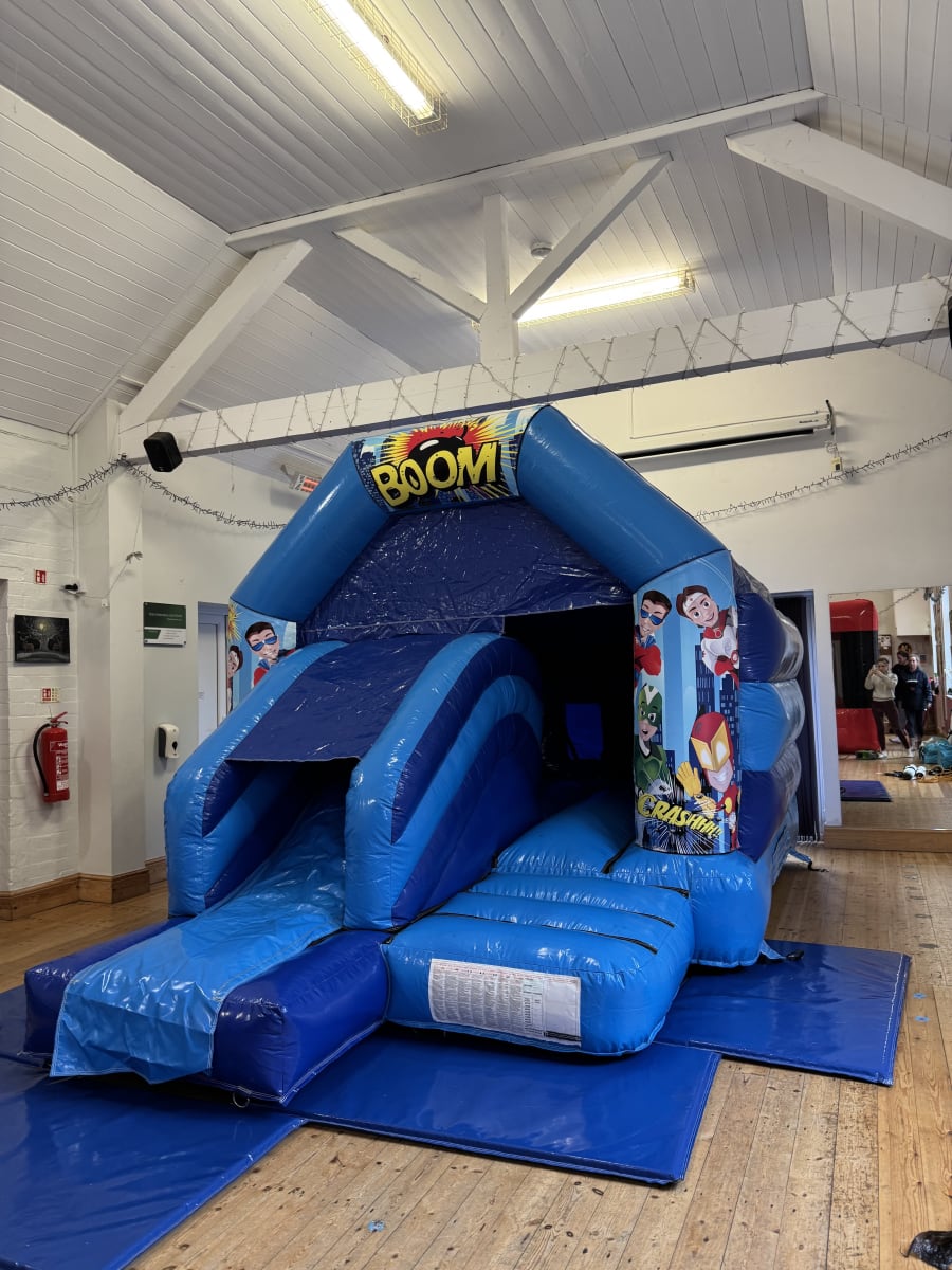 Our Superhero Bouncy Castle & Slide Combo comes with: