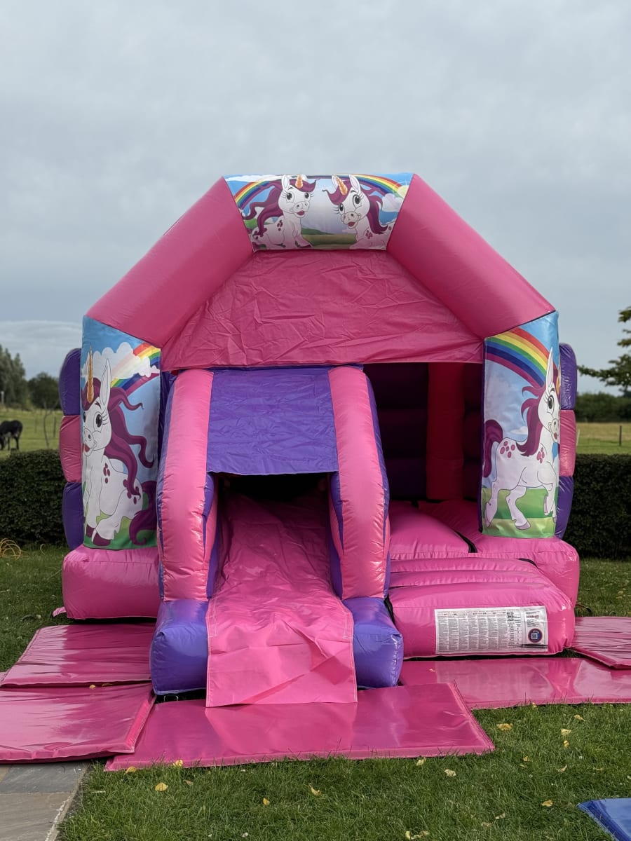Unicorn Pink & Purple Bouncy Castle & Slide Combo