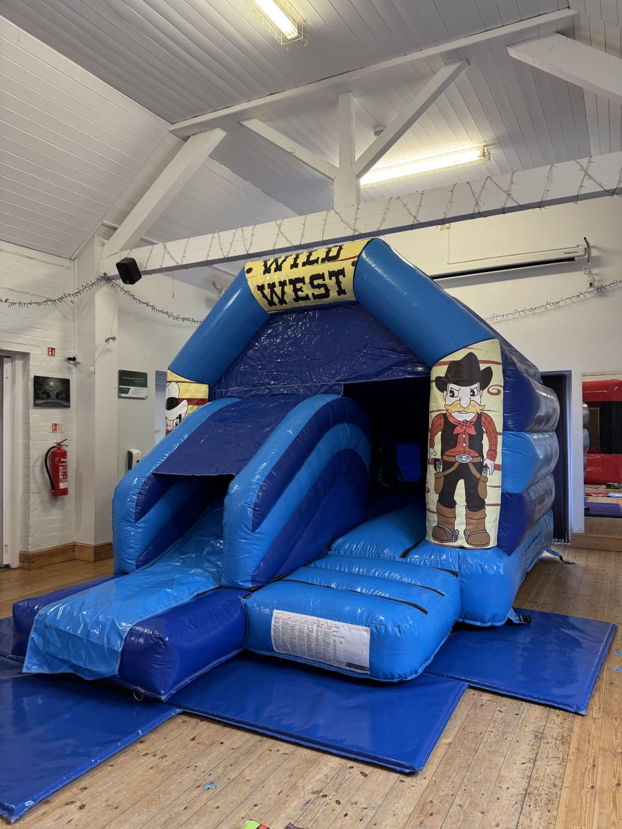 Our Wild West Cowboy Blue Bouncy Castle & Slide Combo comes with: