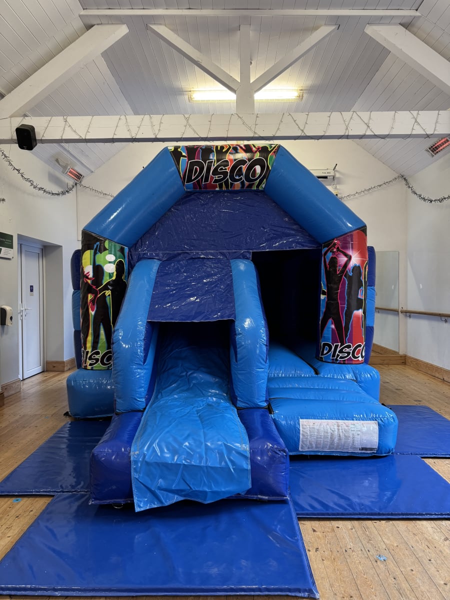 Our Blue Disco Bouncy Castle & Slide Combo comes with:
